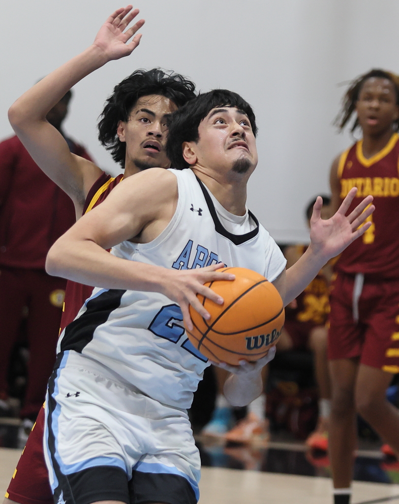 (El Monte) – Brian Edolmo hit a three-point shot at the buzzer to lift Ontario to an improbable 46-45 win over Arroyo Friday night on the Knights home floor.