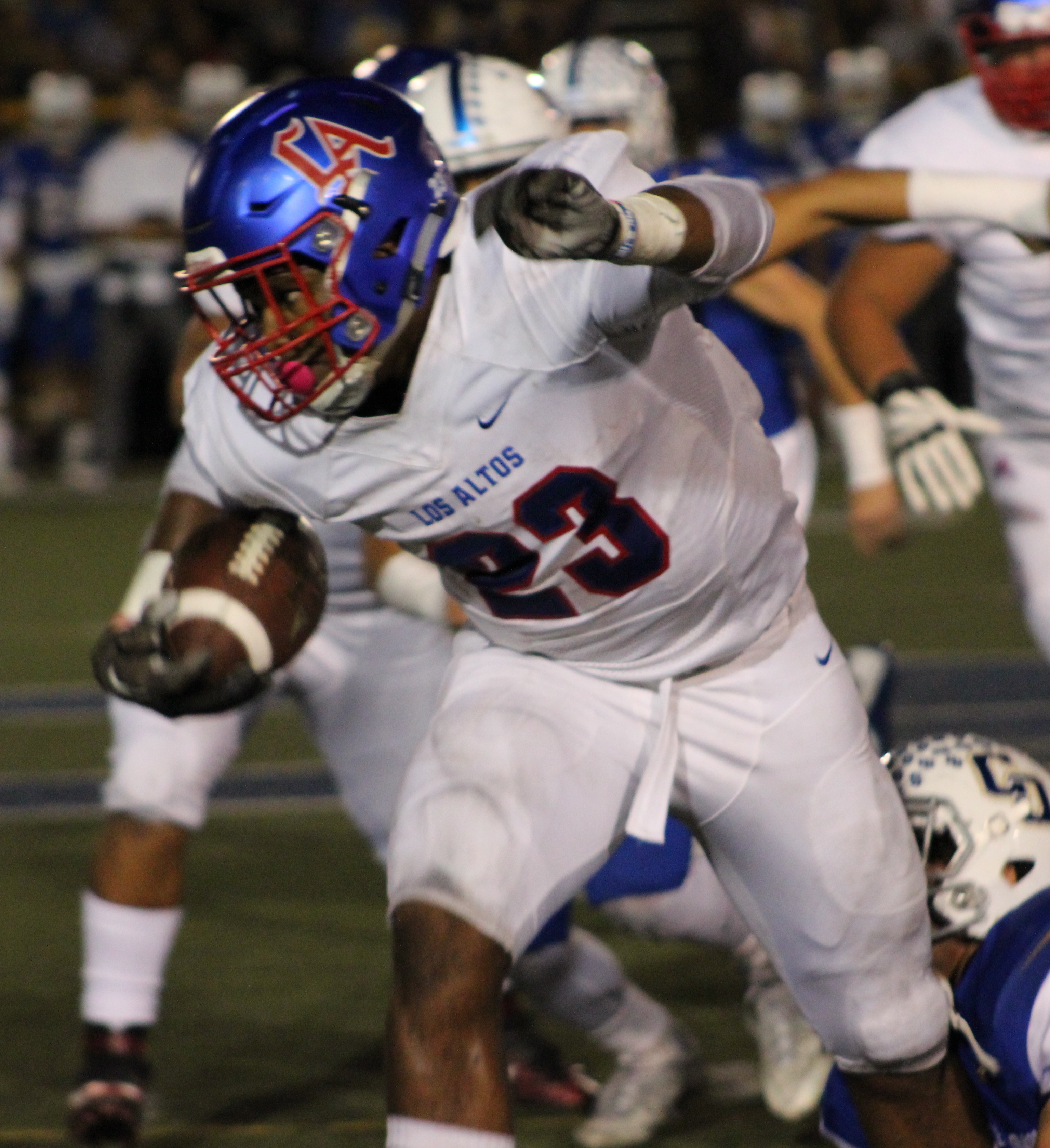 (Covina) – Los Altos got a pick six on its first defensive series of the game to set the tone and went on to beat Charter Oak 21-7 Friday night on the Chargers home field.