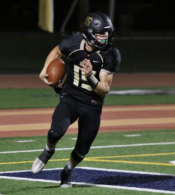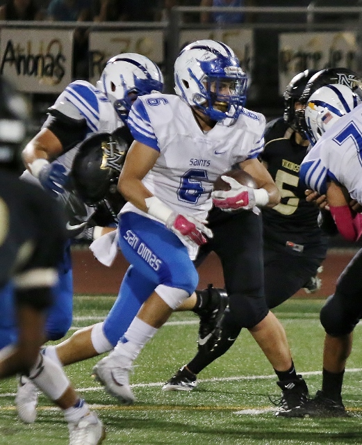 (Covina) – San Dimas stopped Northview quarterback Steven Comstock on the three yard line as the clock ran out to hold on to a dramatic 48-42 victory over the Vikings Thursday night at Covina District Field.