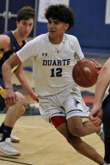 Danny Pina scored 32 points to lead the way as the Falcons opened up a big early lead and cruised to a 10 point victory at Colony High School. Duarte led 20-6 in the first quarter and opened it up by 20 at 48-28 at halftime. The lead was 26 at one point before a late Da Vinci run made it respectable. De ‘Von Hemlsey and Isaiah Aceves each scored 12 and Eli Baxter added 10 – all in the first half.