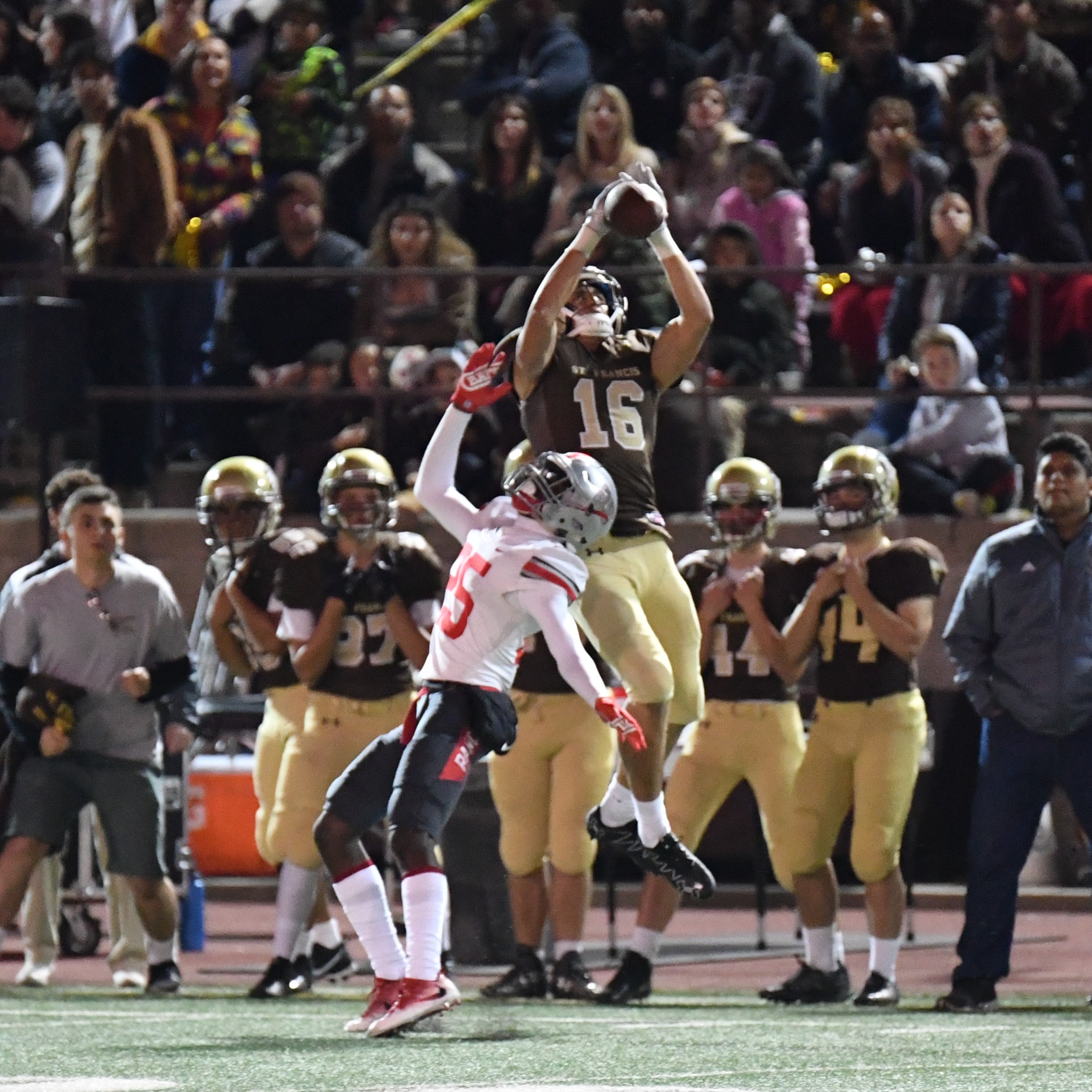 St. Francis receiver Greg Dulcich (shown here against Rancho Verde) is heading to UCLA. (Photo by Doug Brown)