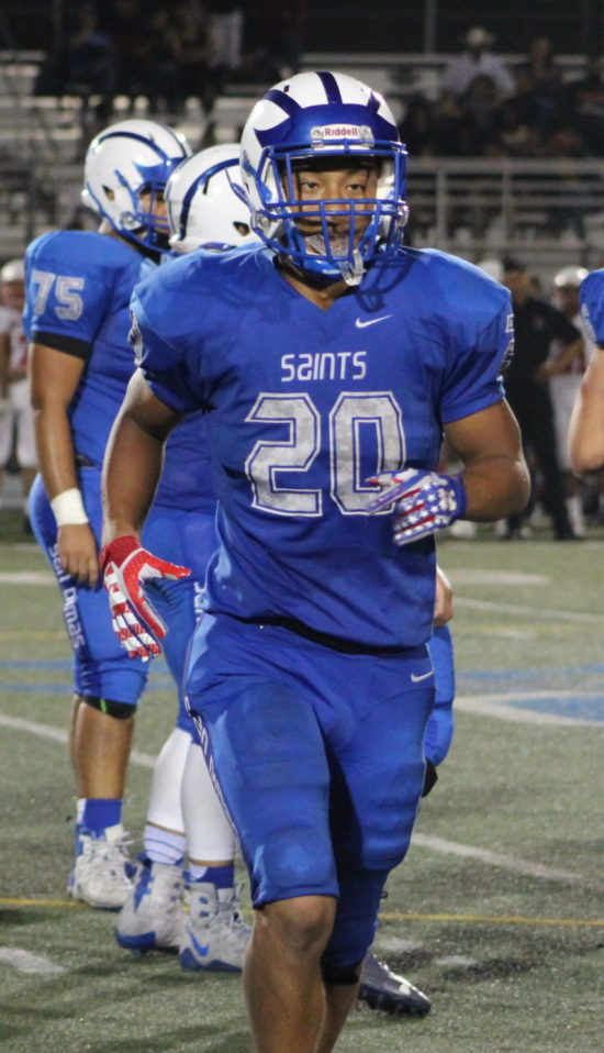 (San Dimas) – San Dimas head coach Mark Holman urged his troops to “throw the first punch” in his pre-game speech. The Saints did that early and eventually threw the knockout blow in a 49-14 rout of Whittier Friday night.