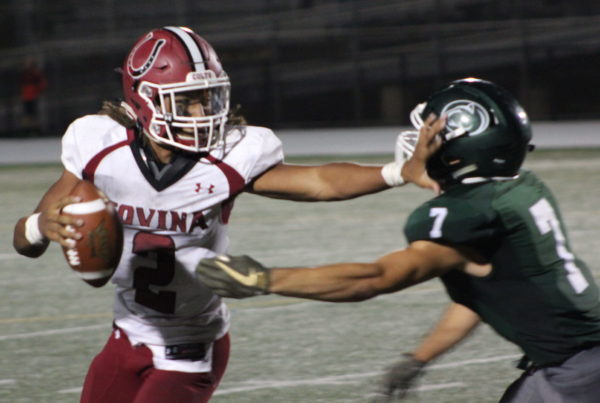 James Duronslet started behind center for Covina as Burns was nursing a sore shoulder. But Burns came on in the second quarter after Duronslet got banged up and looked fine. He rushed for 57 yards and two scores and threw for 121. Cuellar was the workhorse for the Colts rushing for 172 yards and two touchdowns on 18 carries.