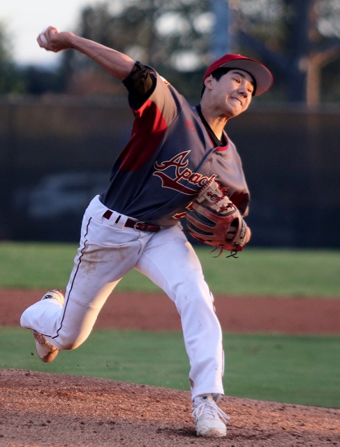 The game was scoreless through the first three innings before Arcadia exploded for five runs in the fourth. Brandon Nguyen started the rally with a one out single and scored on a triple by Jeffrey Castillo. Castillo cruised home on a double by Dustin Allen and Allen scored on a base hit by Dominick Tello. A double by Mikey Easter and a single by Tyler Quintero plated two more and by the time the dust had settled it was 5-0 Apaches.