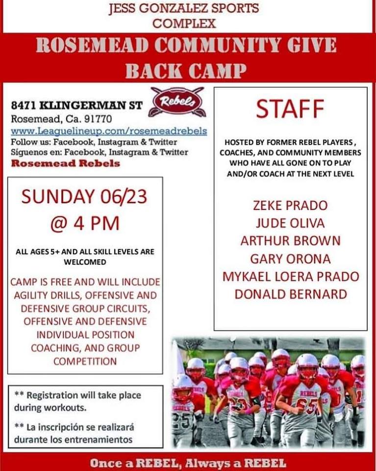 Please come out and be apart of the community Rosemead Rebels Community Give Back. Come listen to what we have to say about the sport we love and the reason for this event.