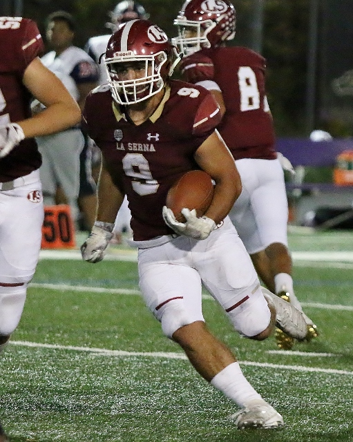 Chandler McCaffer and the La Serna Lancers kick off Del Rio League play with a huge game against El Rancho. (Photo by Duane Barker).