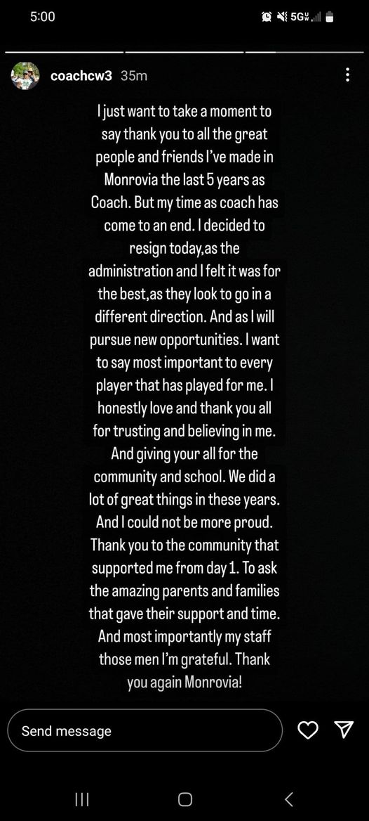 I call for Coach G5 to take the reigns. I see a former alumni taking over though. Who will it be? Kennedy Bryant and sons. Not a bad Idea. I like the sound of that. Monrovia needs someone who will bring back tradition only an alumni can do.