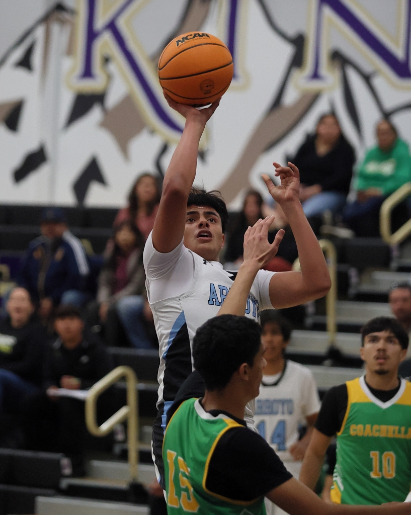 Arroyo increased the lead to eight points at 63-55 with 4:34 left in the contest. Coachella got to within three with 2:23 left but Johnny Vargas hit a huge three for the Knights to help keep Coachella Valley at bay. Arroyo held on to win by eight.
