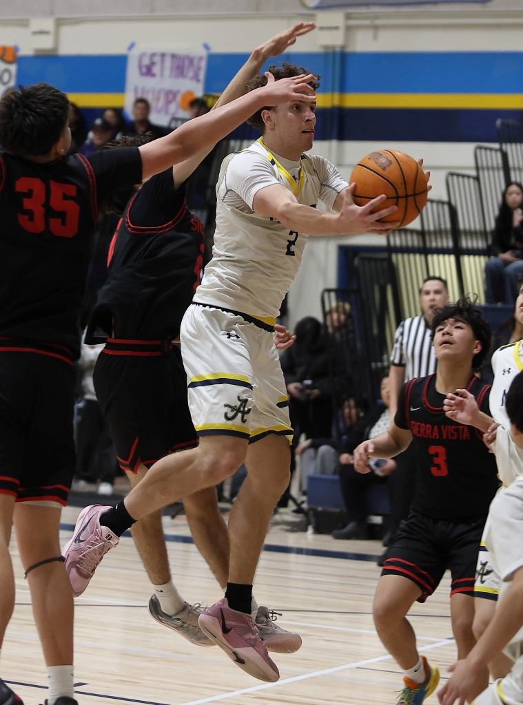 (Alhambra) – Landon Winslow scored 25 points to lead Alhambra to a 72-59 win over Sierra Vista Thursday night in the second round of the CIF Division V State playoffs.