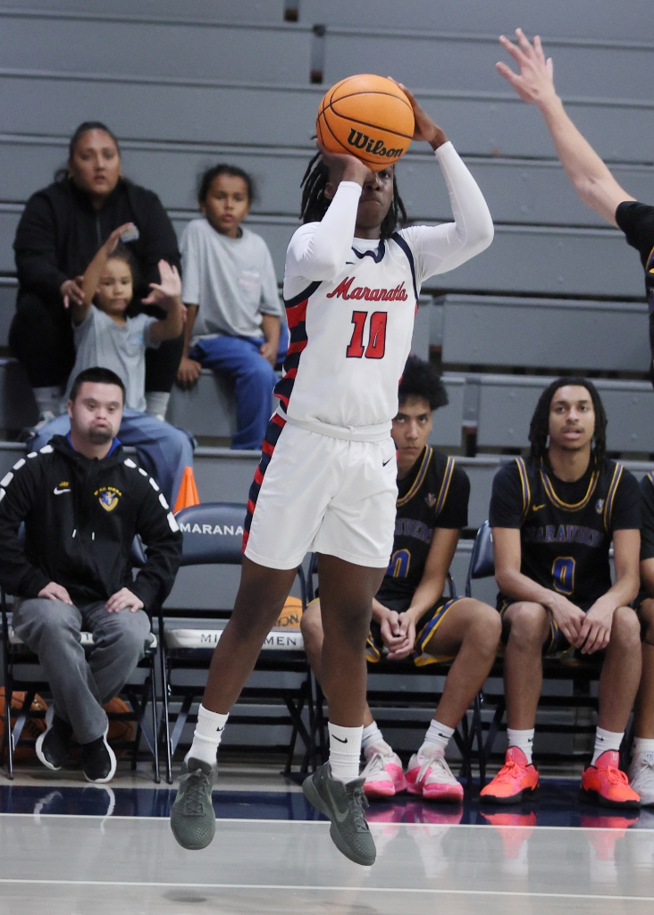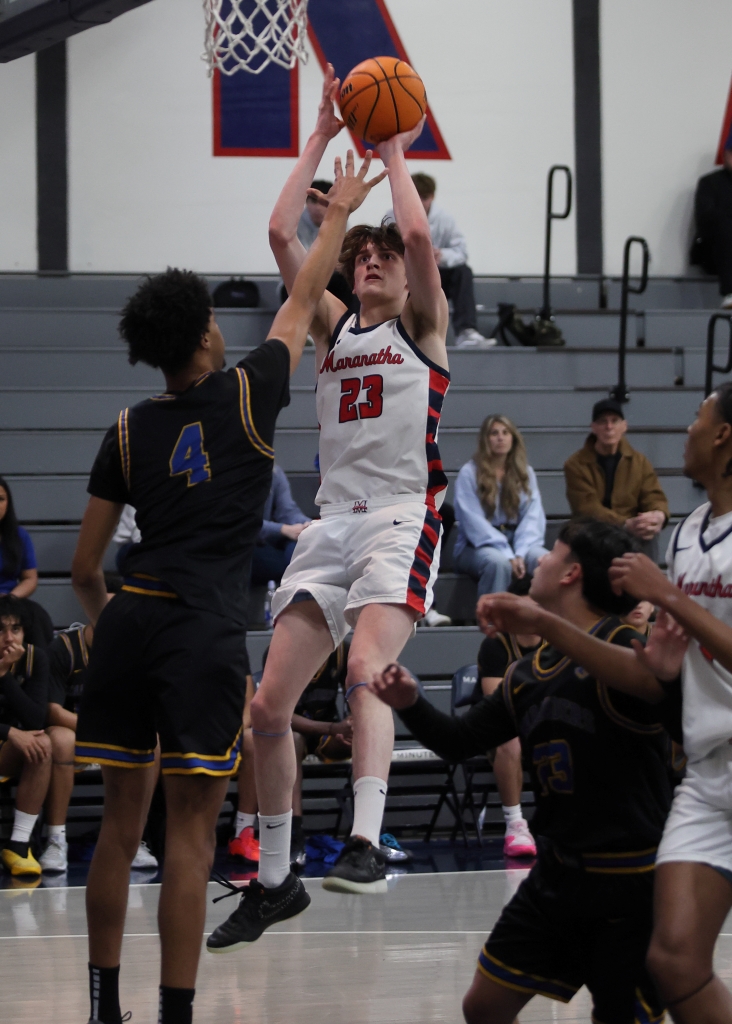 (Pasadena) – Maranatha jumped out to a 14-4 lead to open the game and made it stand up the rest of the way in a 77-57 win over Mira Mesa Saturday night in the CIF Division III Regional Semi-Finals.