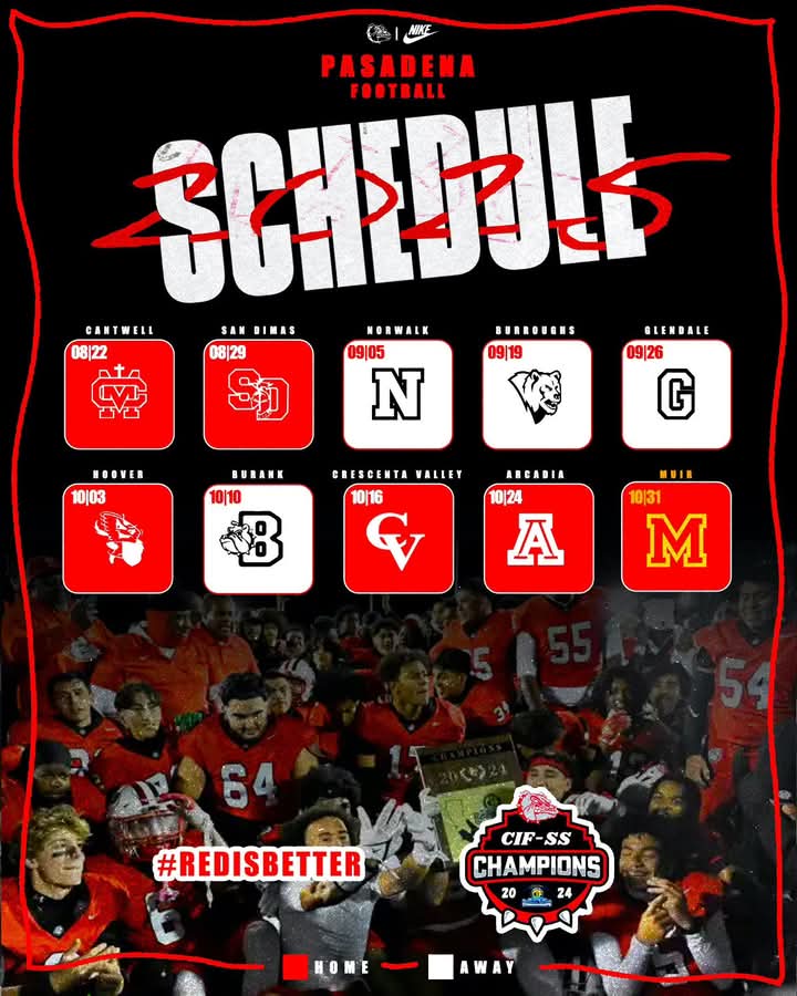 Pasadena 2025 Football Schedule mvs on May 23, 2025 — 2 Comments Cantwell, San Dimas and Norwalk…nice non-league schedule.