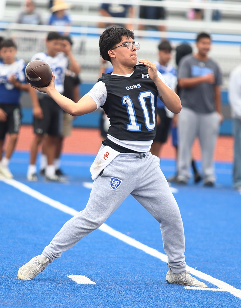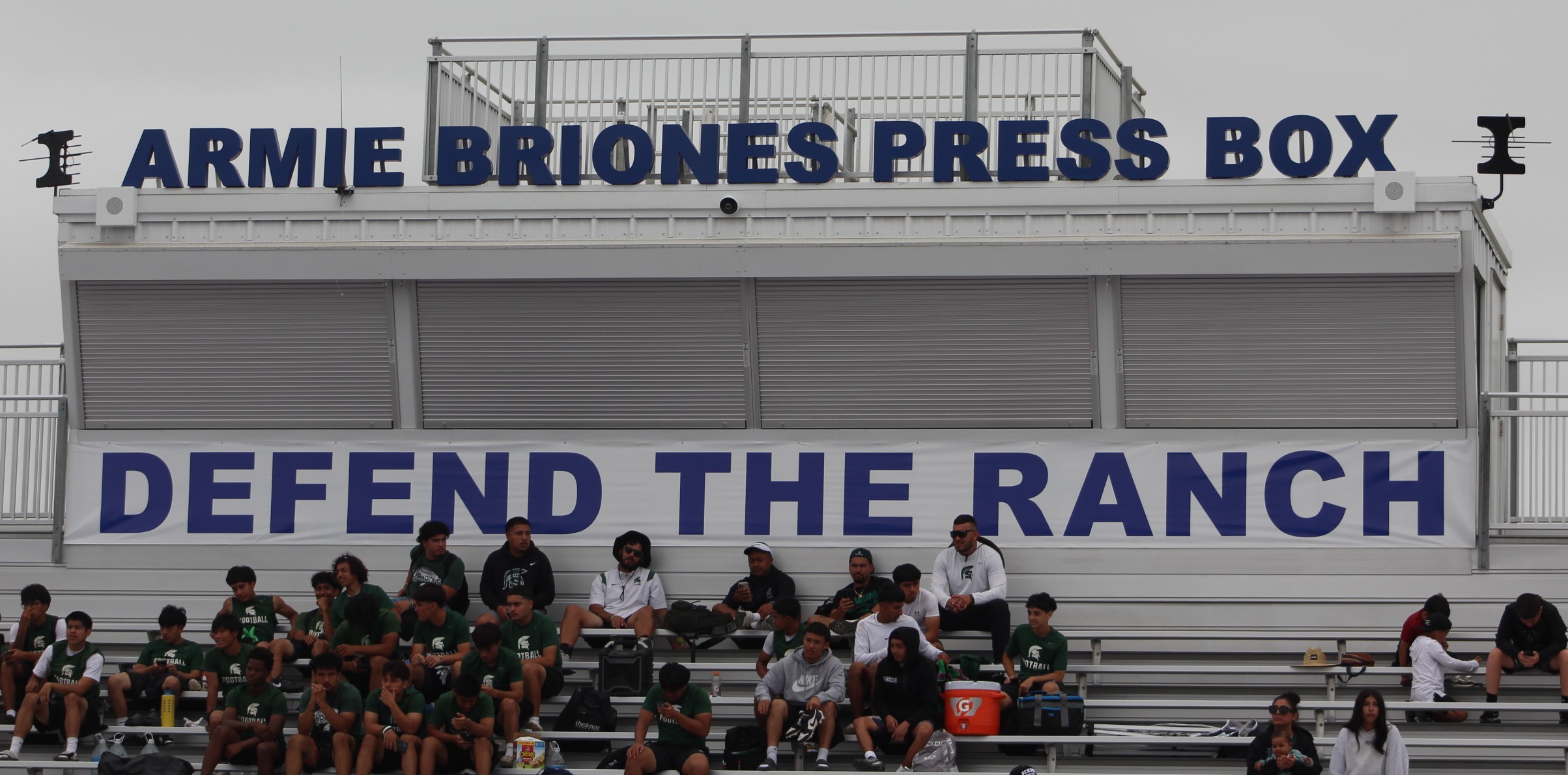A blue field at El Rancho; shades of Boise State. That field might provide a little camouflage for the Dons when they play in their blue home uniforms. I wonder if the opposing teams have an opinion about that.