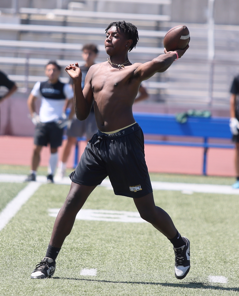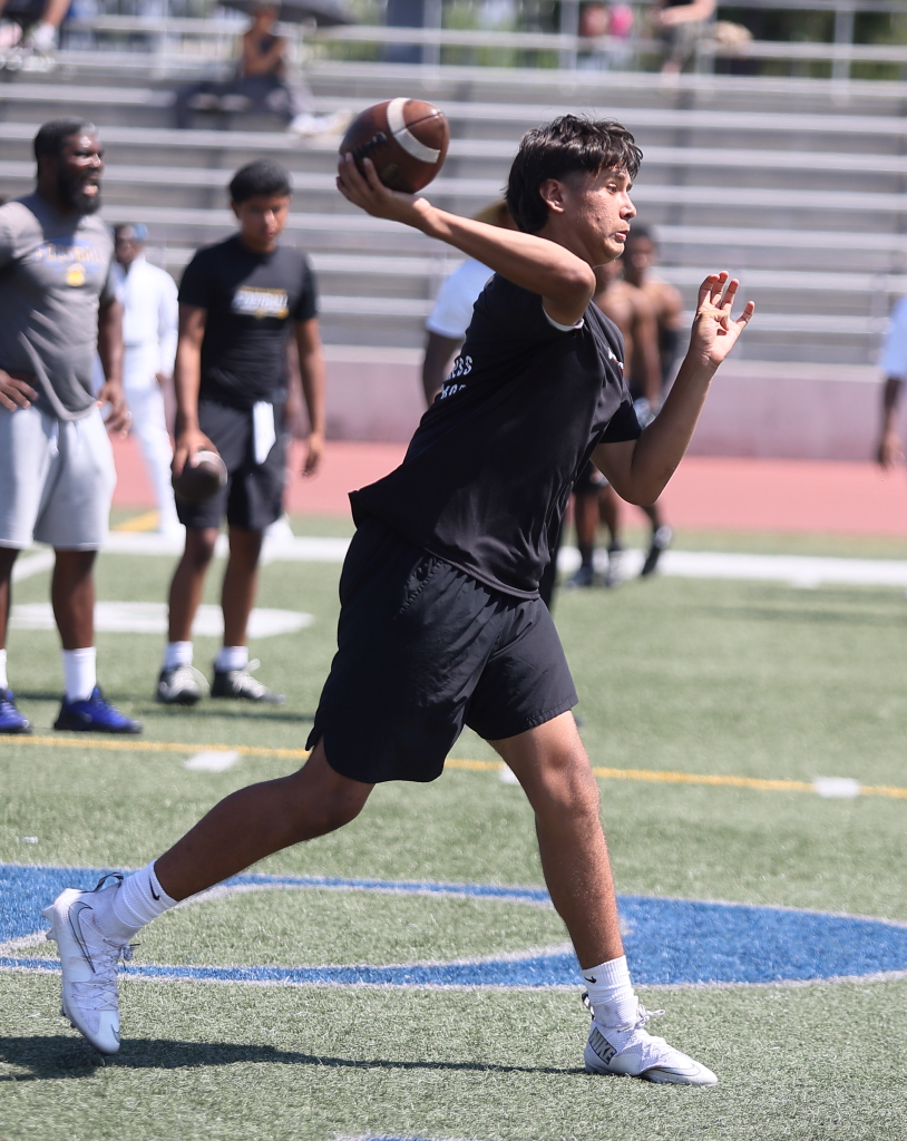 The Baldwin Park Braves hosted their annual passing league tournament on Saturday. Sherman Oaks Notre Dame beat Inglewood in the Championship game. Notre Dame beat Alta Loma and Inglewood knocked off Muir in the Semi-Finals. Here are a few images from the action.
