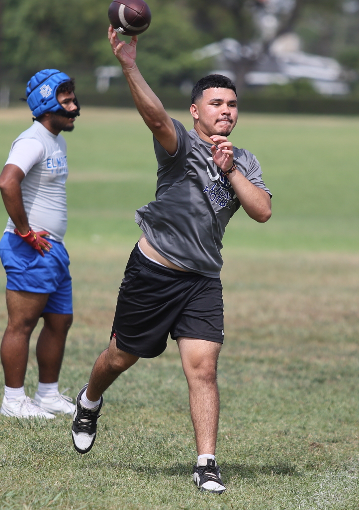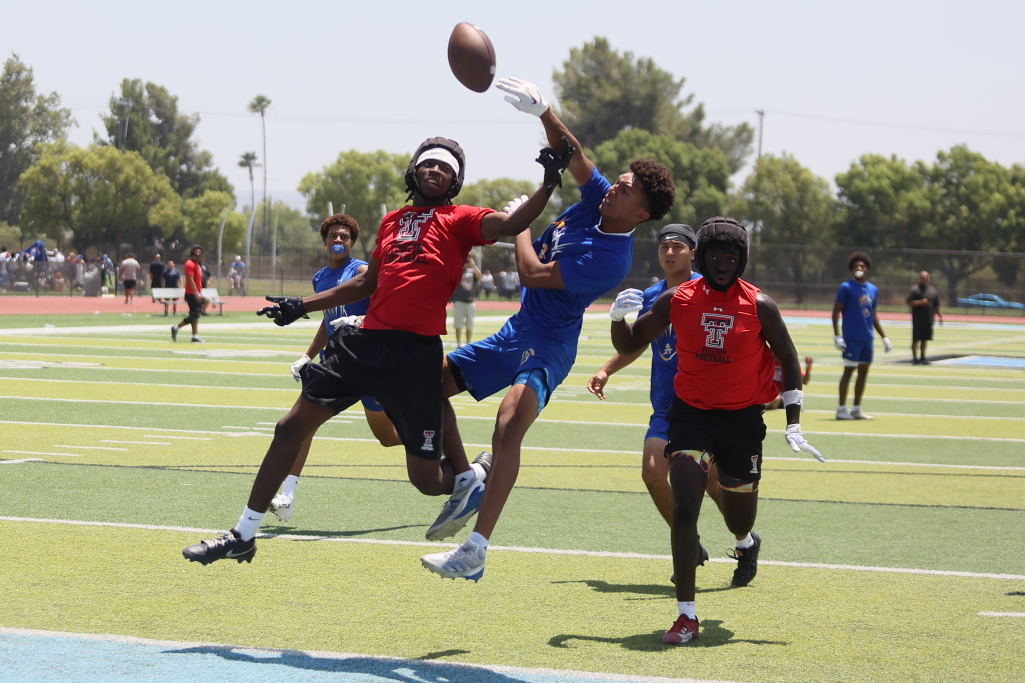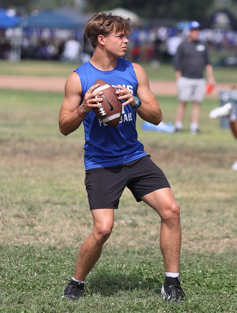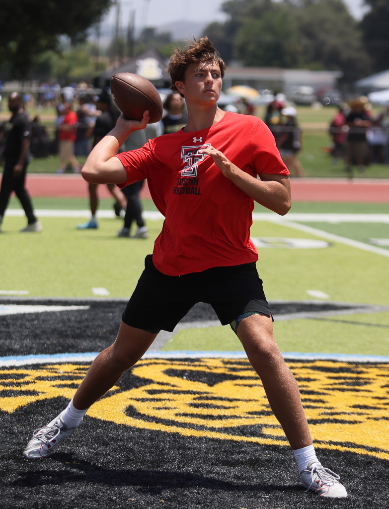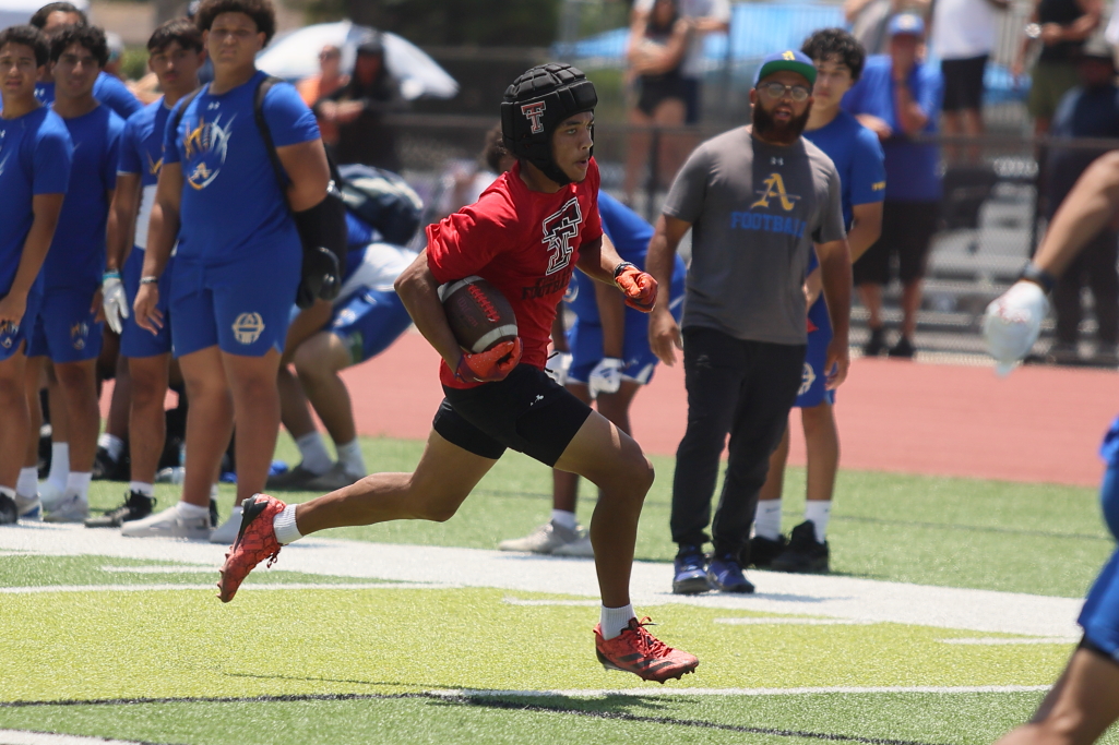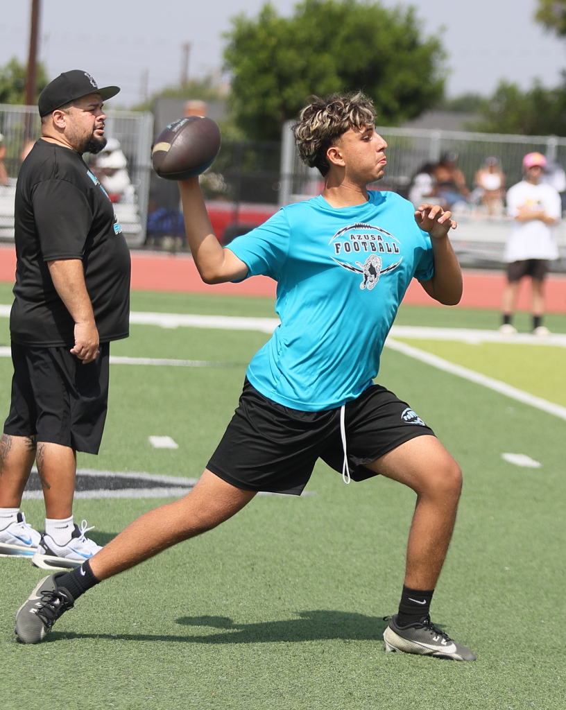 (Azusa) – Tustin beat Bishop Amat in the Final to win the Clash in the Canyons Tournament at Azusa High School Saturday. Tustin beat Bishop Montgomery in the Semi-Finals while Bishop Amat knocked off Granite Hills. Tustin was led by sophomore quarterback Ayden Edwards. The Lancers alternated quarterbacks although Brayden Wann, a transfer from Eisenhower had a big day for Amat. Here are a few shots from the action.