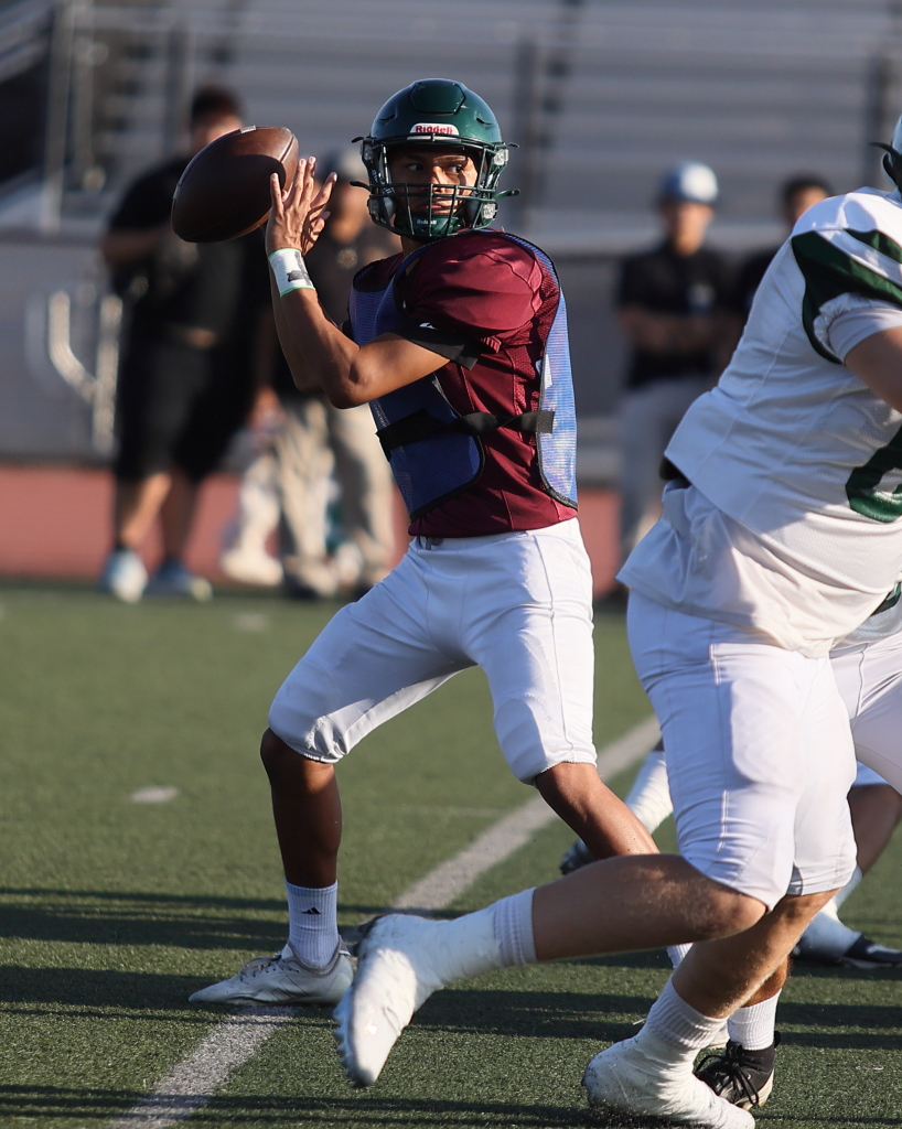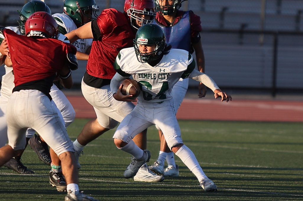 (Arcadia) – It used to be called “The Brawl for the Mall” when Arcadia and Temple City clashed. Friday night it was just an old fashioned scrimmage at Salter Field as both teams prepared for the 2025 season.