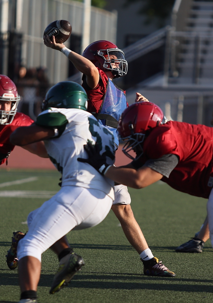 Each team took a series of offensive snaps from the 40-yard line and later from the red zone. No score was officially recorded but Arcadia did have the advantage as quarterback AJ Presnall threw a few long touchdown passes. The Apaches offense was able to consistently move the ball on the Rams defense.