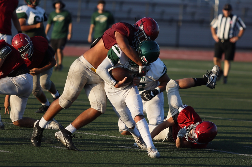 The Temple City offense struggled at times and the Apache defense intercepted Temple City quarterback Jake Leones. The TC defense did manage an interception late in the contest.