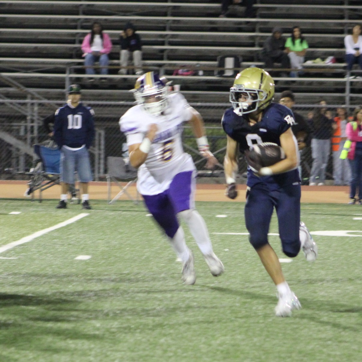 (Rowland Heights) – CJ Carrillo crashed into the endzone with 35 seconds left in the fourth quarter to lift Rowland to a dramatic 22-21 win over Diamond Bar Friday night on the Raiders home field.