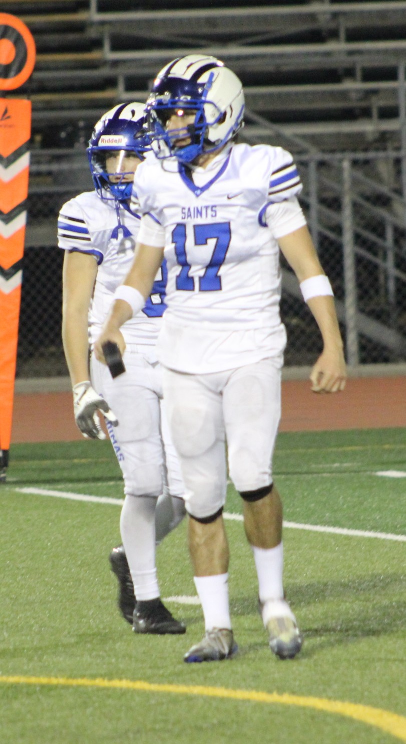 The rally started when on San Dimas’ second possession of the third quarter Jacob Gallegos broke off a 59-yard run to get the Saints on the board and make it 22-7 with 4;44 left in the quarter.