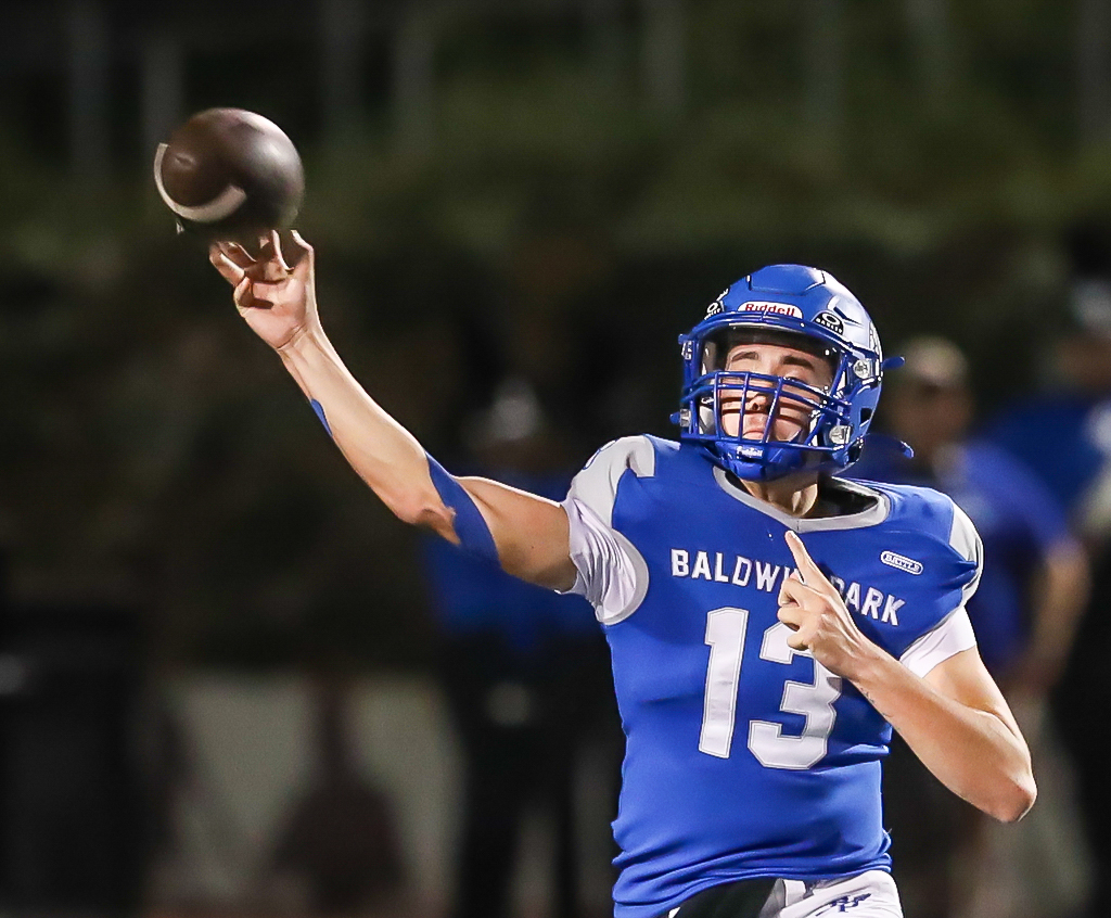 Quarterback Valentino May and Baldwin Park will host Shadow Hills Friday night. (Photo by David Thomas).