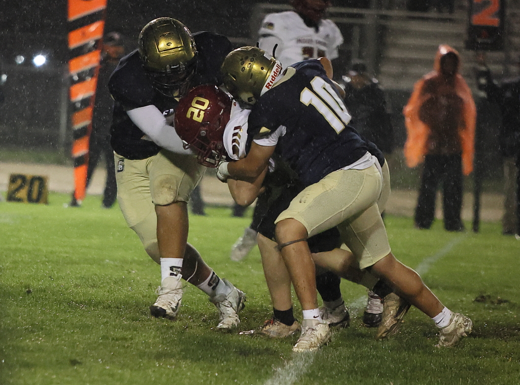 Both teams’ defenses had the advantage in the first half as the rain poured down making sustained drives difficult.
