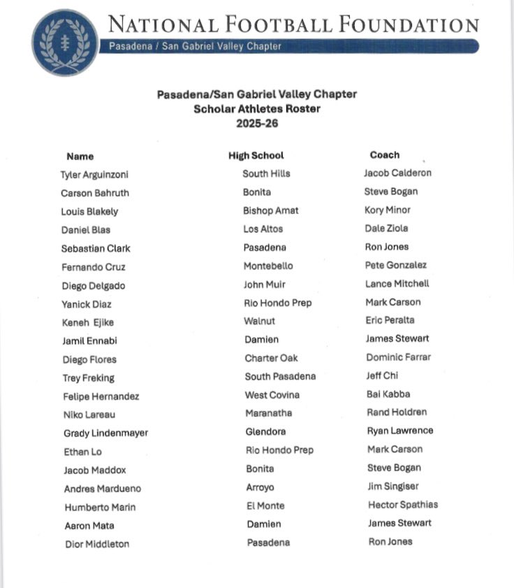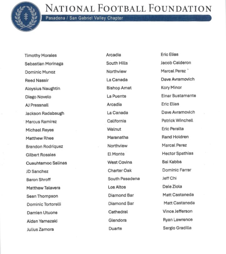 Here are the 2025-’26 National Football Foundation Scholar Athletes. They will be honored at the foundation annual awards banquet Wednesday night.
