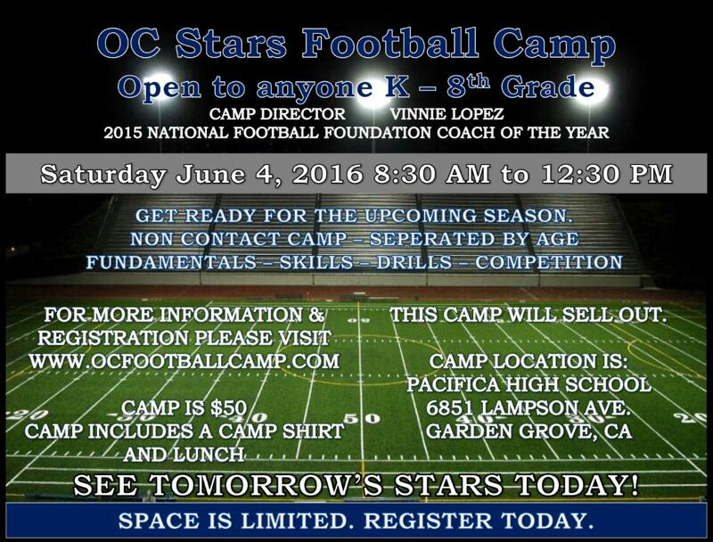 Pacifica to Host Football Camp June 4 mvs on May 3, 2016 — Leave a Comment Pacifica High School will host a football camp June 4. Here’s the details.
