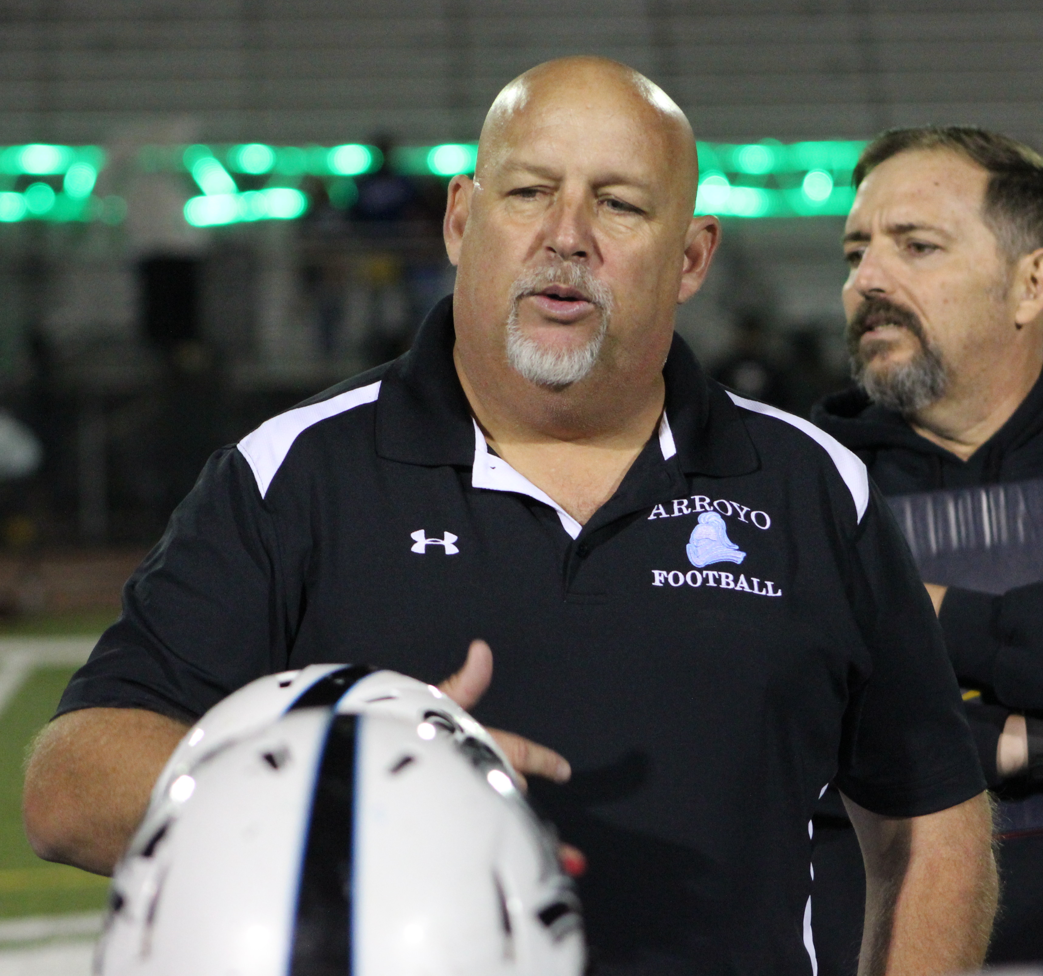 Jim Singiser, in his 14th year at the helm, not only led Arroyo into the playoffs but all the way to a Division 12 CIF championship and a dramatic 35-34 win over Rancho Mirage. Singiser made the call that led to the celebration going for two in overtime. Ernesto Camacho hit Devin Knight in the corner of the end zone and an out pouring of love spilled out all over B.L. Bergstrom Stadium.