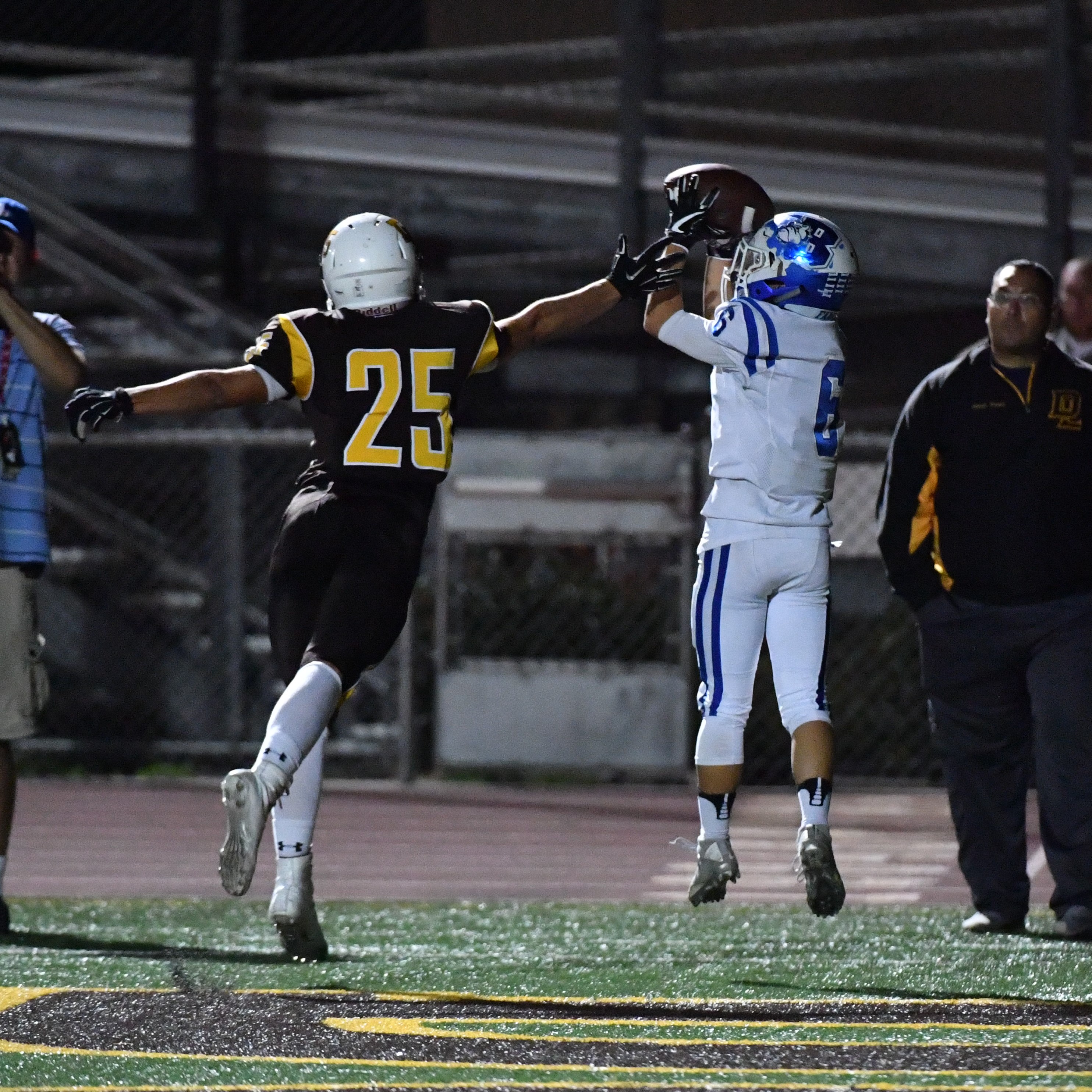 That quickly changed when the Bulldogs pushed Don Lugo back on their possession, forcing them to punt. Starting their drive at the 7-yard line, Burbank drove the entire field in 13 plays that ended when Porras found wideout Chadz Vang in the back corner of the end zone to bring his team within seven with 3:48 left to play in the second quarter.