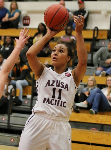 Former Monrovia Wildcat star Gina Henderson had nine points for APU including two three pointers. (Photo by Duane Barker).