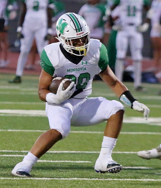 For Monrovia Rams rushed for 128 and three scores and hauled in two passes for 64 yards and a touchdown. Frank Hernandez caught six passes for 105 yards and two scores and Nick Hernandez had 247 yards passing and three touchdowns.