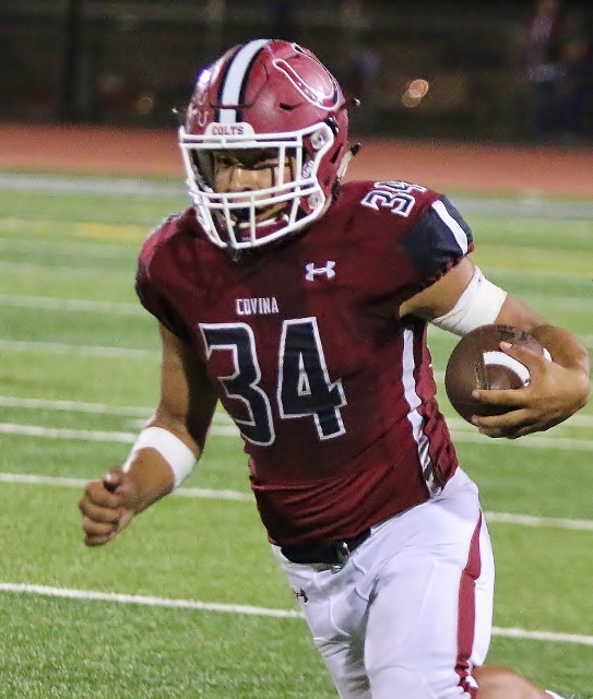 There were big plays throughout the night. Maury Rams IV scored on a reception of 61 yards and a run of 48 for Monrovia. Frank Hernandez also hauled in a 58-yard touchdown pass from Nick Hernandez for the Cats. Covina running back Erik Cuellar hit paydirt on a 69-yard jaunt for the Colts.