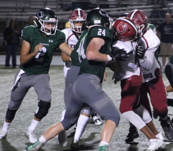 But Burns picked off Andrade on Bonita’s next series and Cuellar broke off a 62-yard touchdown run and Covina was right back in it. The Colts then tied it on their next possession marching 97 yards on 12 plays with Burns finishing it with a two-yard run.