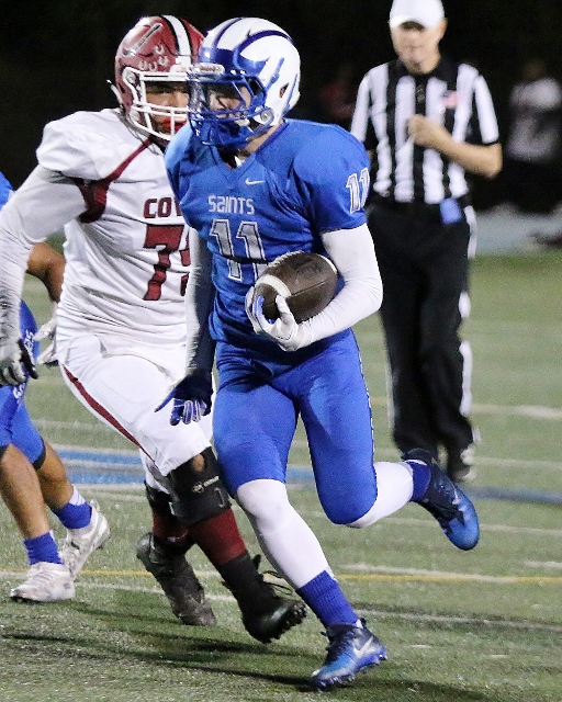 The Saints went up 14-0 in the first quarter when Rivera finished a 10-play drive with a one-yard run and after a Covina fumble left the Saints on a short field, Nick Cuda scored on a 19- yard run.