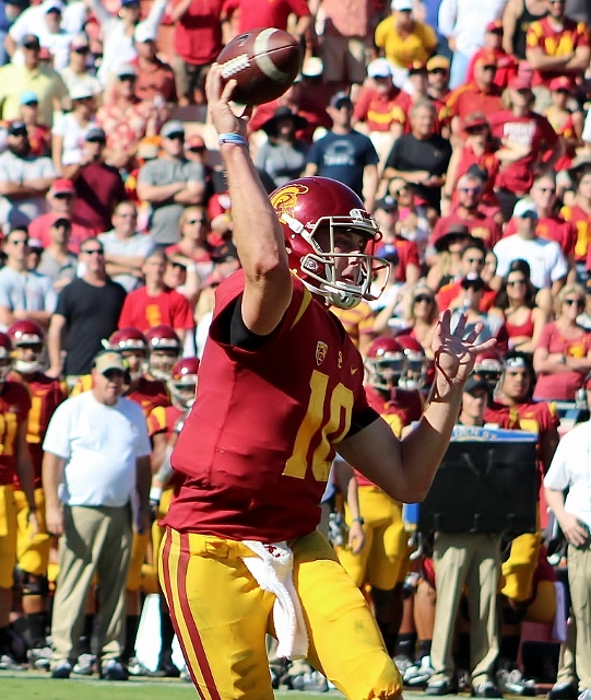 On ASU’s next possession Wilkins was hit by Iman “Biggie” Marshall, the ball popped loose and Jonathan Lockett fell on it at the Arizona State 26. The Trojans immediately took advantage of the turnover when on the first play Clay Helton reached into his bag of tricks and pulled out a double pass. Sears hit Vaughns who then threw a strike to Pittman in the end zone who fought off a defender and pulled it in for 26-yard touchdown. with 10:24 left in the third the Trojans had regained the lead at 28-24 and all seemed right with the cardinal and gold.