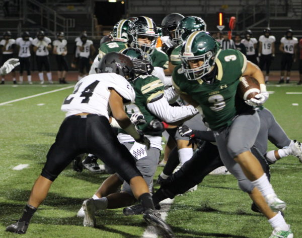 On Tustin’s next series, Jordan Sanchez intercepted Mateo Vasquez’ pass and retuned it down to the Tustin three-yard line. Two plays later, Juaquin Elliott blasted in for a two-yard score for a 20-7 South Hills lead with 6:26 left.