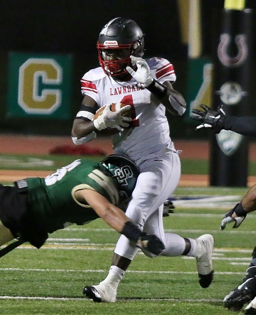 USC commit Jordan Wilmore did a majority of the damage for the Cardinals rushing for 276 yards and three touchdowns on 19 carries. He got things started in the first quarter with an 18-yard touchdown run with 7:19 left in the first quarter for a 6-0 Lawndale lead.