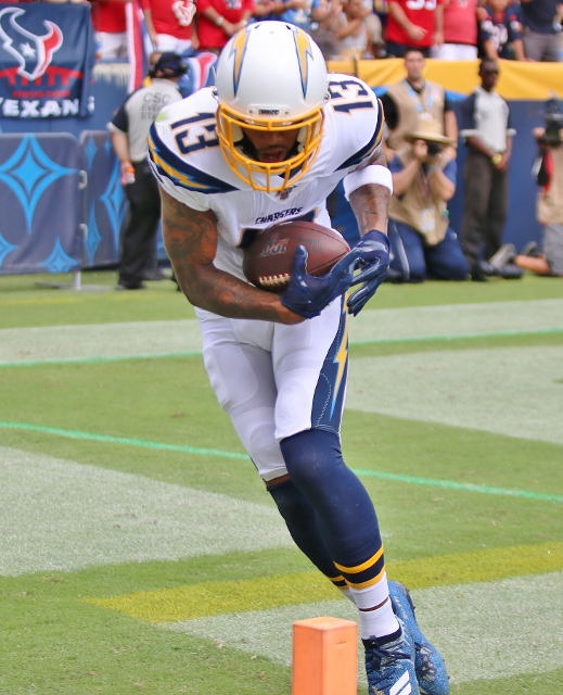 Keenan Allen had a huge day for the Chargers with 13 catches for 183 yards and two touchdowns. (Photo by Duane Barker).