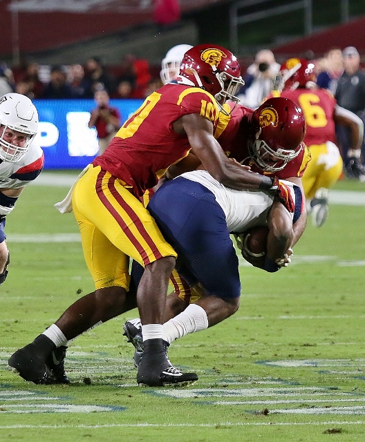 The Trojans led 17-0 at the half and 24-0 at the end of three before Arizona picked up a couple of late touchdowns.