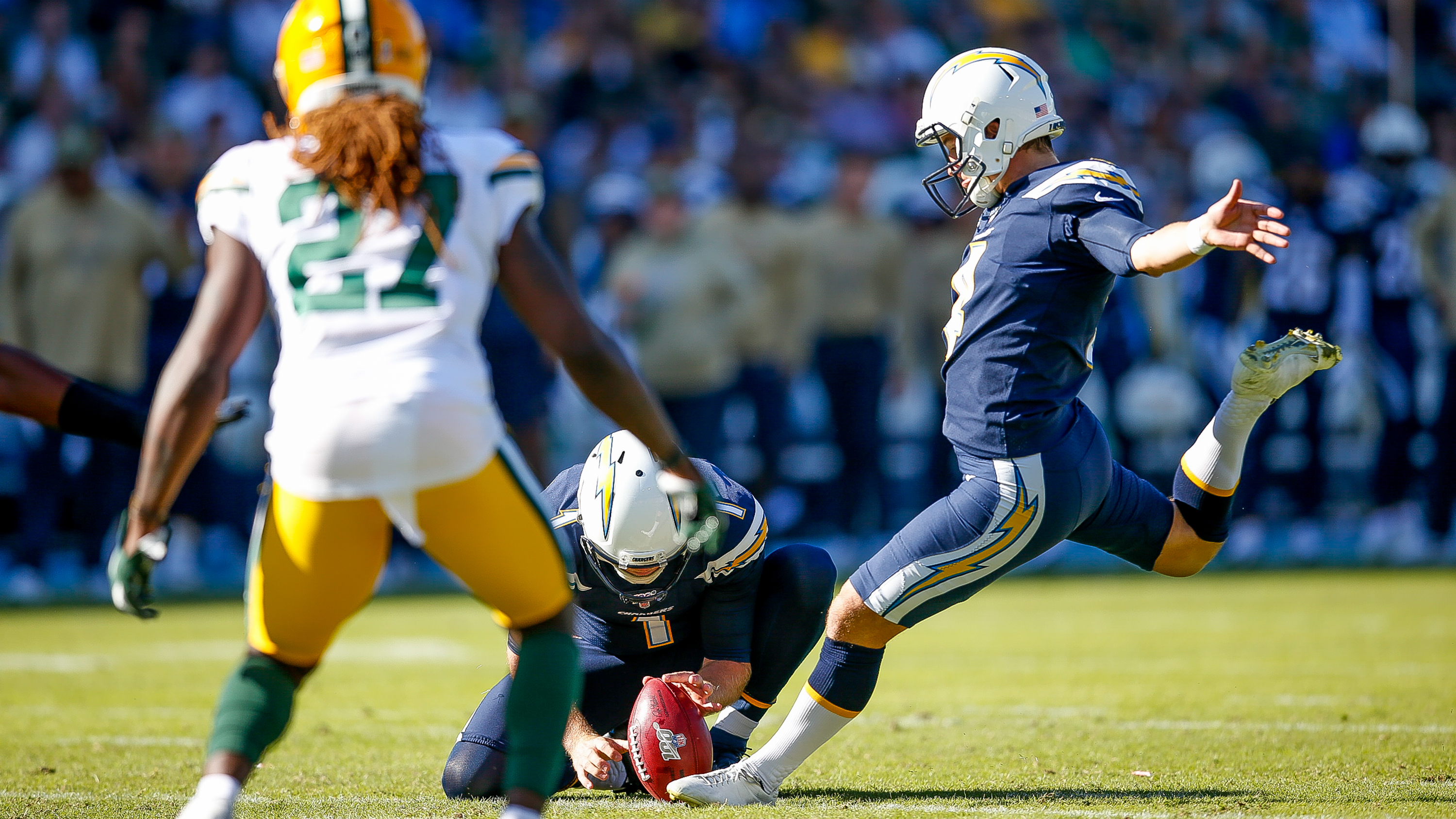 The Chargers were able to burn four minutes off of the clock before Badgley missed his first field goal of the day from 44 yards out with 2:10 left. Green Bay was forced to turn the ball over on downs on its last possession.