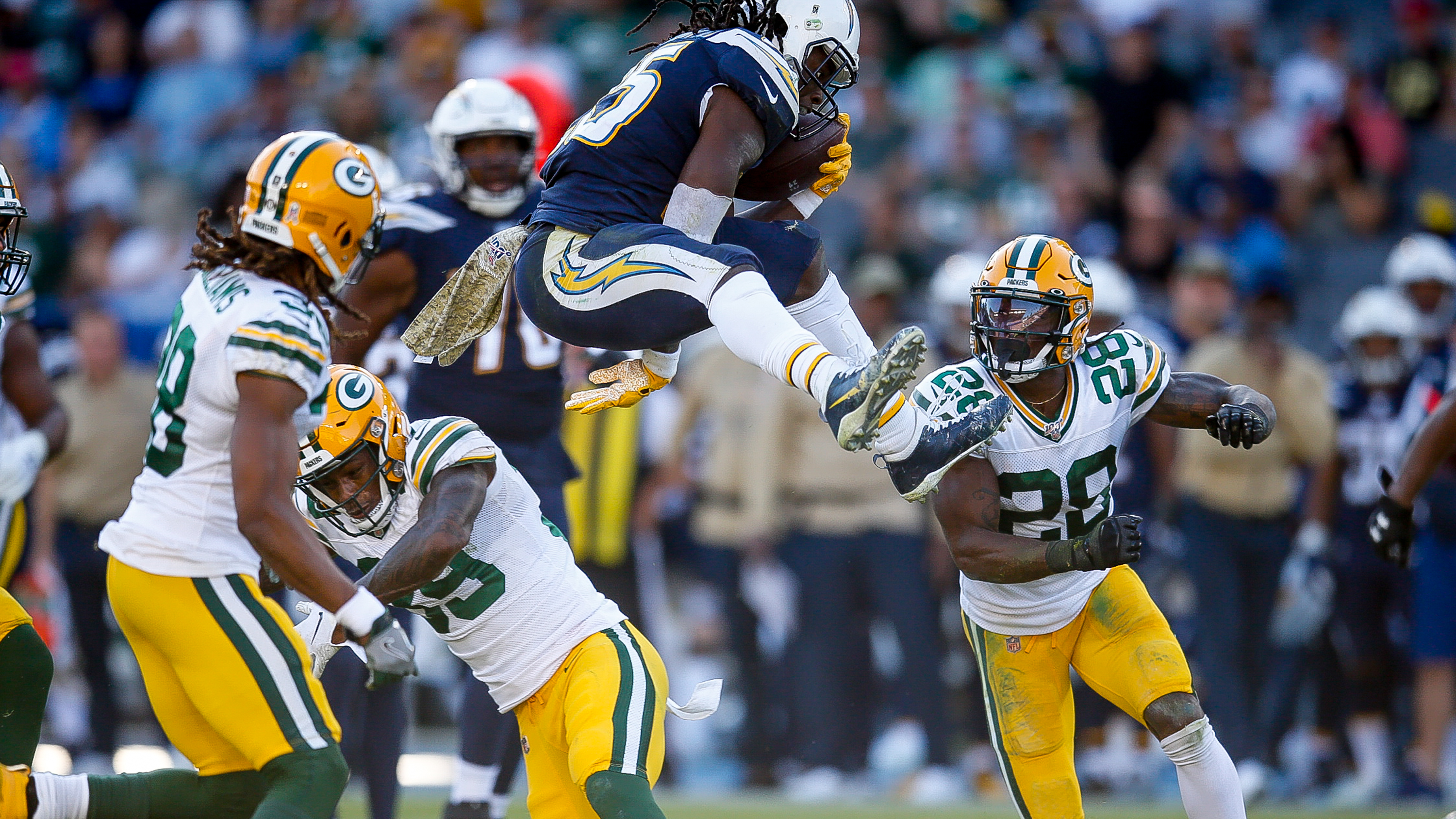 Early in the fourth quarter Badgley had kicked his fifth field goal of the game but the Chargers took the points off the board when a Green Bay offsides penalty gave them a fourth and goal at one yard line. Gordon then crashed in the endzone to make it 26-3.