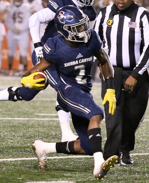 JD Sumlin had a 72-yard touchdown run to get Sierra Canyon close in the third quarter. (Photo by Duane Barker).