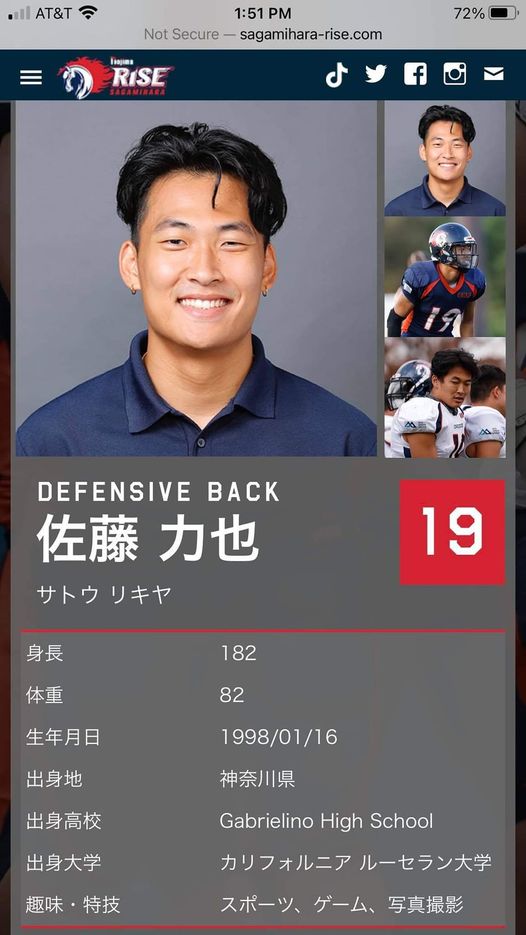 - Former Gabrielino star Rikiya Satoh (Class of 2016) who went on the play football at Cal Lutheran, is now playing American football in Japan in their semi-professional X-League.