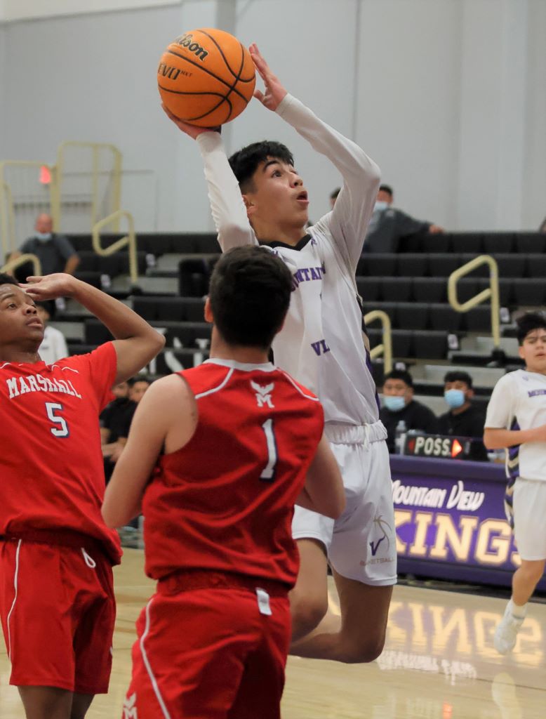 Tied at 26 at the half Jeryck Chavoya buried three three pointers to spark the run and Derek Barocio hit a couple of baskets as well. By the time the dust had settled it was 42-26 Vikings. Mt. View outscored Marshall 24-13 in the third quarter overall with Chavoya scoring 16 of the 24 in the quarter.