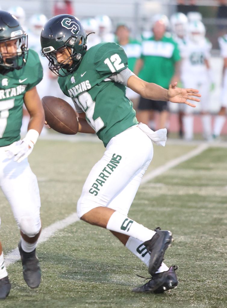 It didn’t take long for South to get on the board returning the opening kickoff to the Spartan 45. A personal foul was tacked on to the end of the run putting South in business at the Schurr 30. Two plays later Jaylen White scored on a 27-yard run. After Kyle Brown’s extra point South was up 7-0 with 10:59 left in the first.