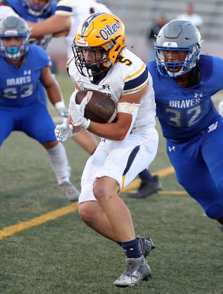 On the ensuing kickoff following the Braves last touchdown, the Oilers got a big boost of momentum when Nikel Patel fielded the kickoff at his own 17 and weaved his way through the Brave coverage team. When it was over Patel electrified the Oiler faithful with an 83-yard return to glory.