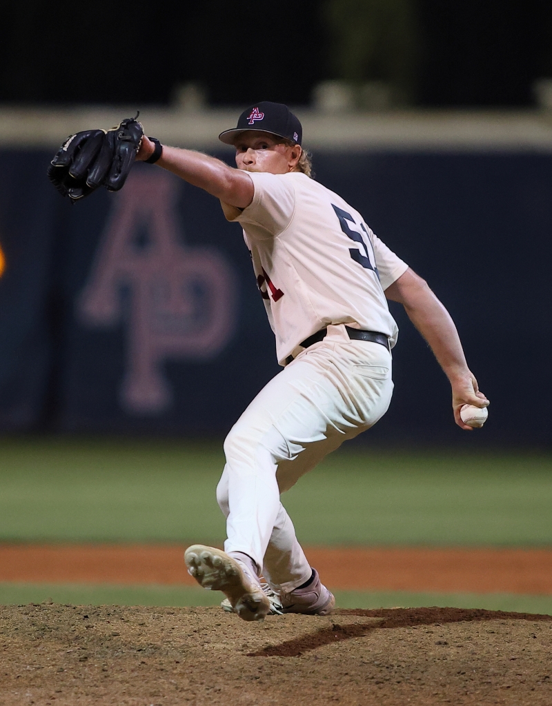 While Driscoll sailed along for Point Loma APU used seven pitchers on the night. Blake Hagerty started and lasted just one and one-third innings. Kyle Bender came on in the second inning in relief and got the last two outs.