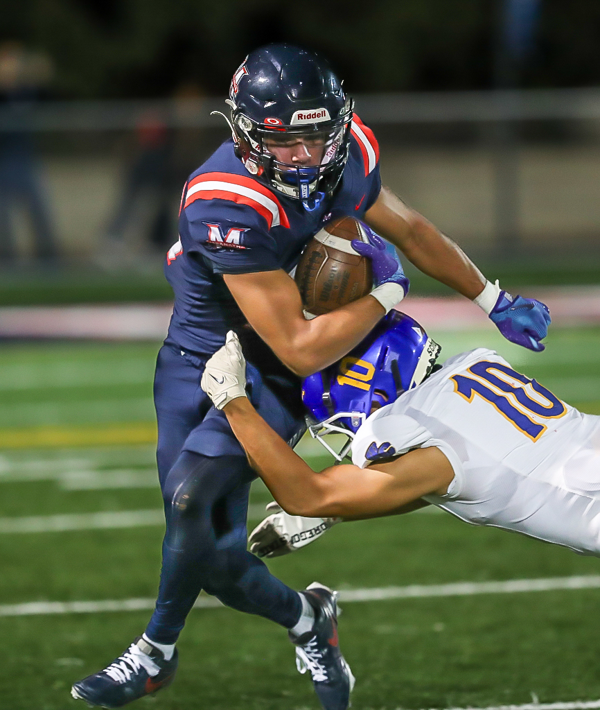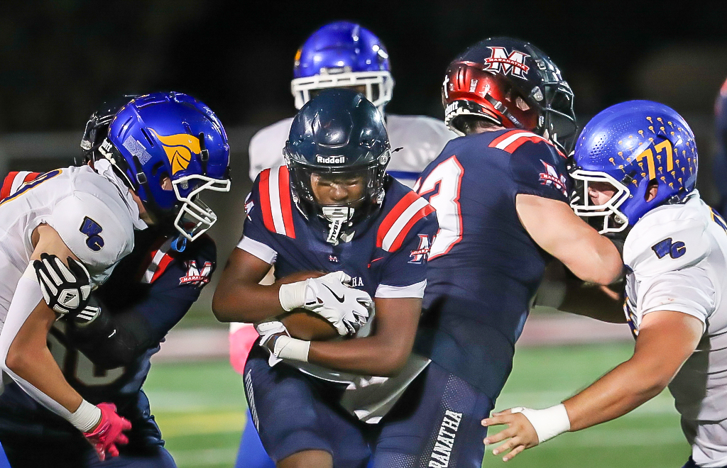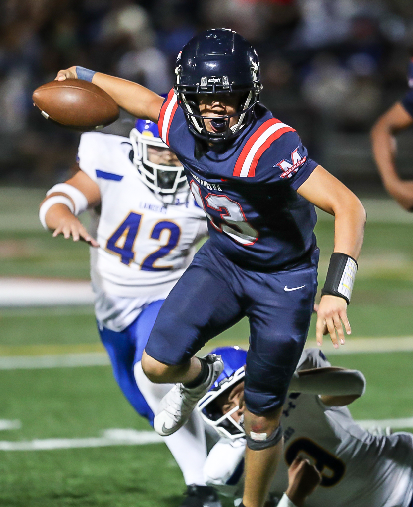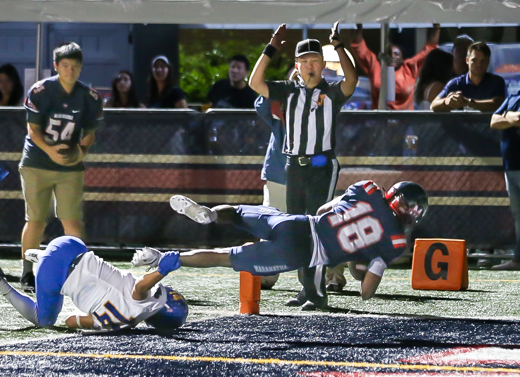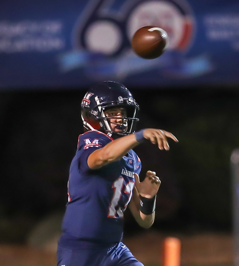 Maranatha’s Bradley Loiacono (17) attempts a catch under heavy pressure during a homecoming football game between the Maranatha Minutemen and the visiting Western Christian Lancers in Pasadena, CA on October 10, 2025. (Photo by David Thomas)Maranatha’s Cooper Berry (13) attempts a throw during a homecoming football game between the Maranatha Minutemen and the visiting Western Christian Lancers in Pasadena, CA on October 10, 2025. (Photo by David Thomas)Maranatha’s Nico Vergara (14) avoids a tackle during a homecoming football game between the Maranatha Minutemen and the visiting Western Christian Lancers in Pasadena, CA on October 10, 2025. (Photo by David Thomas)Maranatha’s Cooper Berry (13) escapes a tackle during a homecoming football game between the Maranatha Minutemen and the visiting Western Christian Lancers in Pasadena, CA on October 10, 2025. (Photo by David Thomas)Maranatha’s George Pamilton III (18) runs for a touchdown during a homecoming football game between the Maranatha Minutemen and the visiting Western Christian Lancers in Pasadena, CA on October 10, 2025. (Photo by David Thomas)