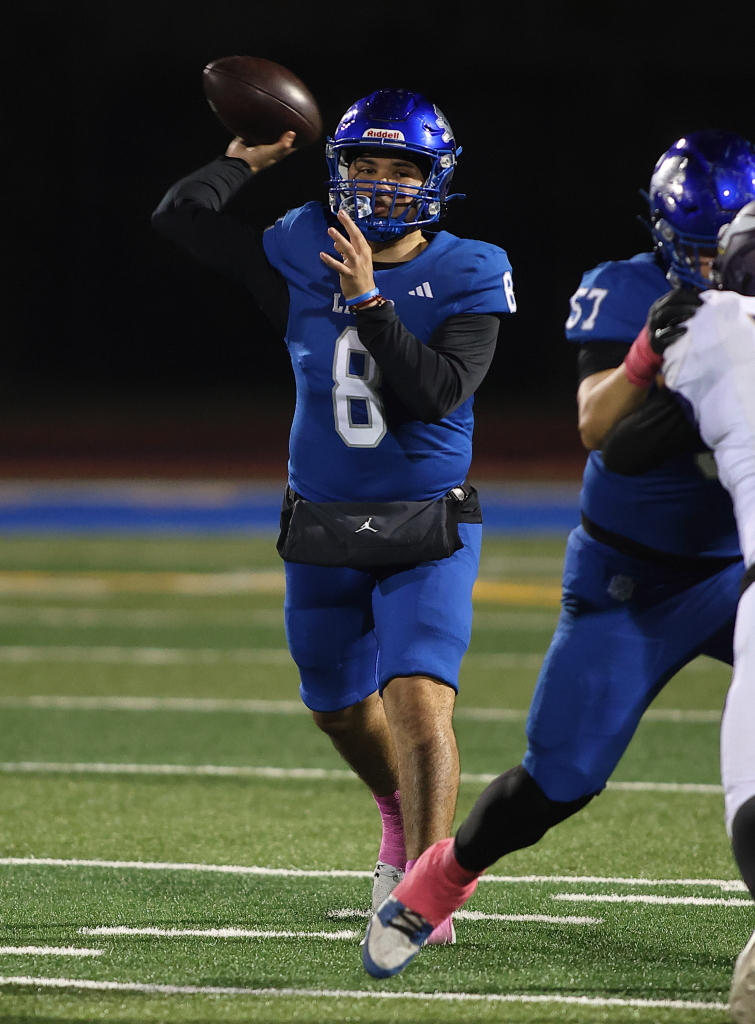 Los Altos is 8-0 and looking to run the table. Diamond Bar lost its first five games but has since bounced back to win its last three- all Hacienda League games. This one is for the league title. Dominic Tortorelli s having a big year for Diamond Bar and ran for over 200 yards and four touchdowns last week. Diego Castillo has been behind center leading the Los Altos offense which has been clicking as well. Both teams can score. It may come down to how has the ball last. Los Altos remains unbeaten.