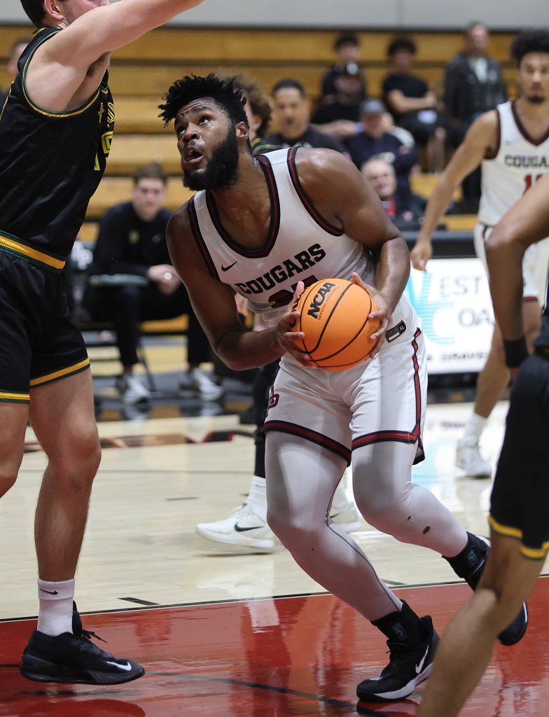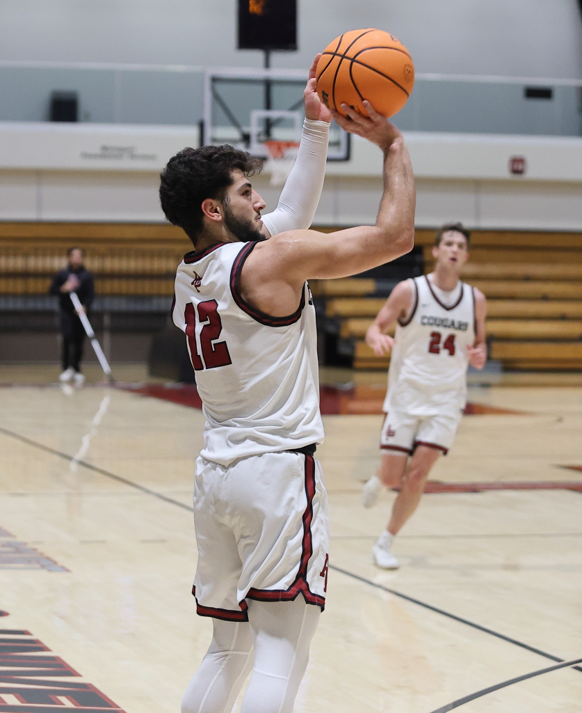 Shant Chenorhavorian nailed a three pointer late in the first half to get the Cougars within 11 but they were still down 15 as the first half buzzer sounded. Chenorhavorian had seven in the first half and DJ Sanders scored six.